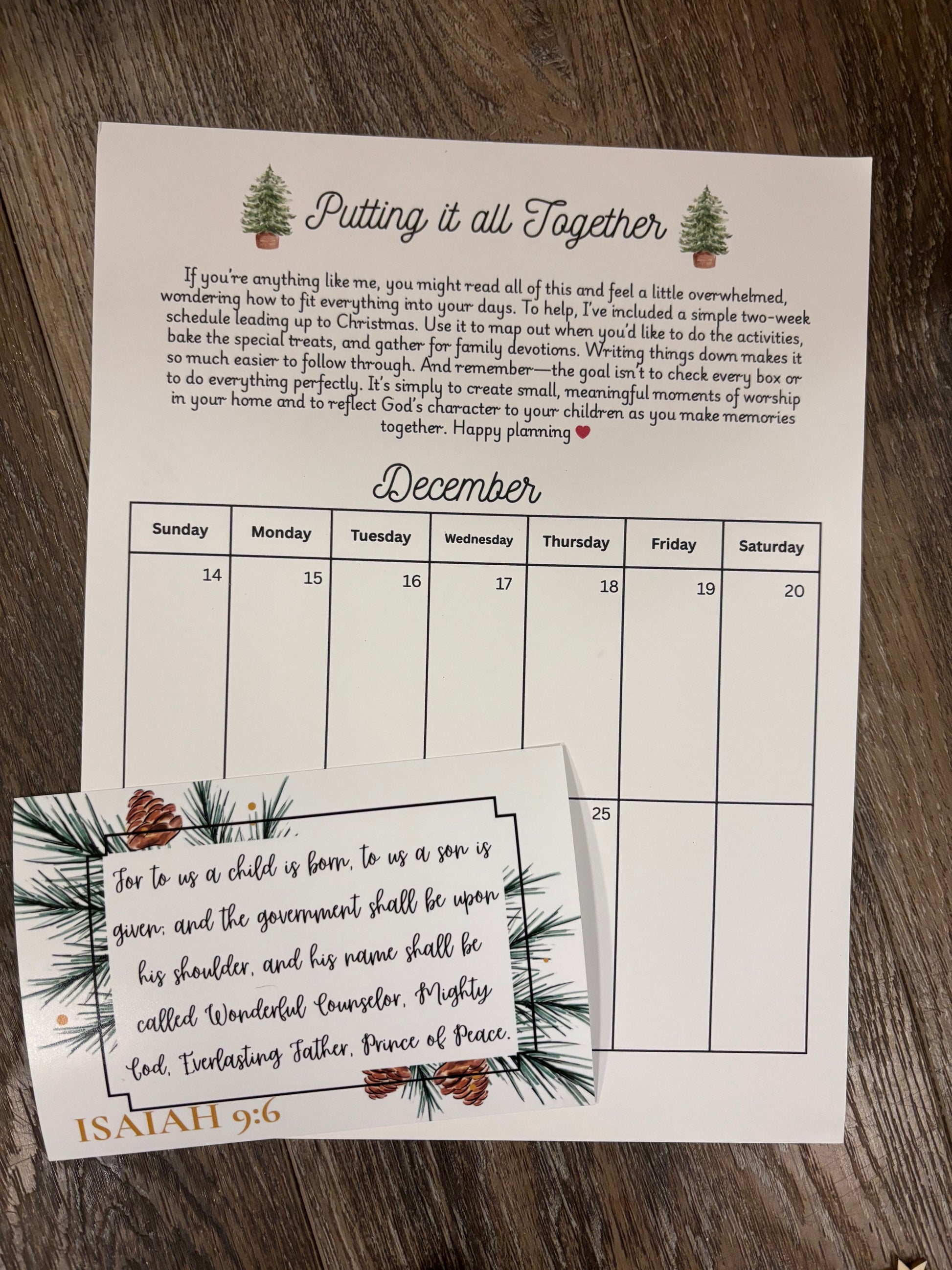 Whether you’re building traditions, creating cozy memories at home, or guiding your little ones through the story of Immanuel, this kit gives you everything you need to make Christmas both peaceful and purposeful. Each piece is created with the everyday mom in mind—simple, attainable, joyful, and rooted in truth.